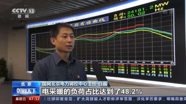 國網北京電力調控中心主任 白晶:經過我們測算,在大負荷期間,電采暖的負荷占比達到了48.2%,也說明北京清潔電能采暖的城市供電特性日趨明顯。目前,北京電網運行平穩,供應量充足,能夠滿足城市供電需求。