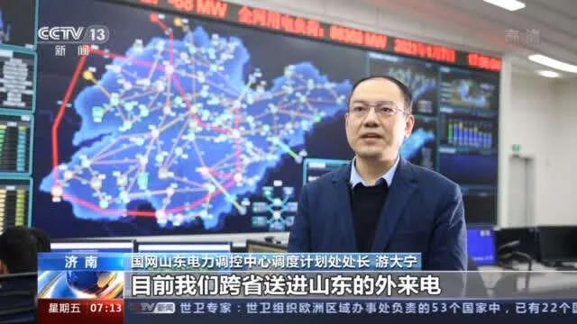國網山東電力調控中心調度計劃處處長 游大寧:目前,我們跨省送進山東的外來電,占到了所有負荷的22%,并且,全省光伏、風電出了很大力,首次突破1800萬千瓦,占比接近20%,為我們保障用電安全提供了有力支撐。