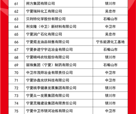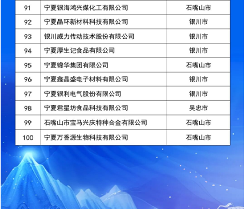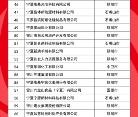 10月21日,2025寧夏民營企業100強發布會在吳忠市舉行,發布了“2025寧夏民營企業100強榜單”,入圍門檻5.84億元,入圍企業營收總額為3513.79億元,資產總額5755.01億元,利潤總額506.80億元。其中,制造業有73家,房地產業有11家,建筑業、批發和零售業、電力熱力燃氣及水生產供應業各有4家,交通運輸、倉儲和郵政業有2家,商務服務業有1家,農、林、牧、漁業有1家。有28家企業涉及新型材料產業,有18家企業涉及風電、光伏、氫能等清潔能源產業。會上,還發布了“2025寧夏制造業民營企業100強榜單”和《2025寧夏民營企業100強調研分析報告》。